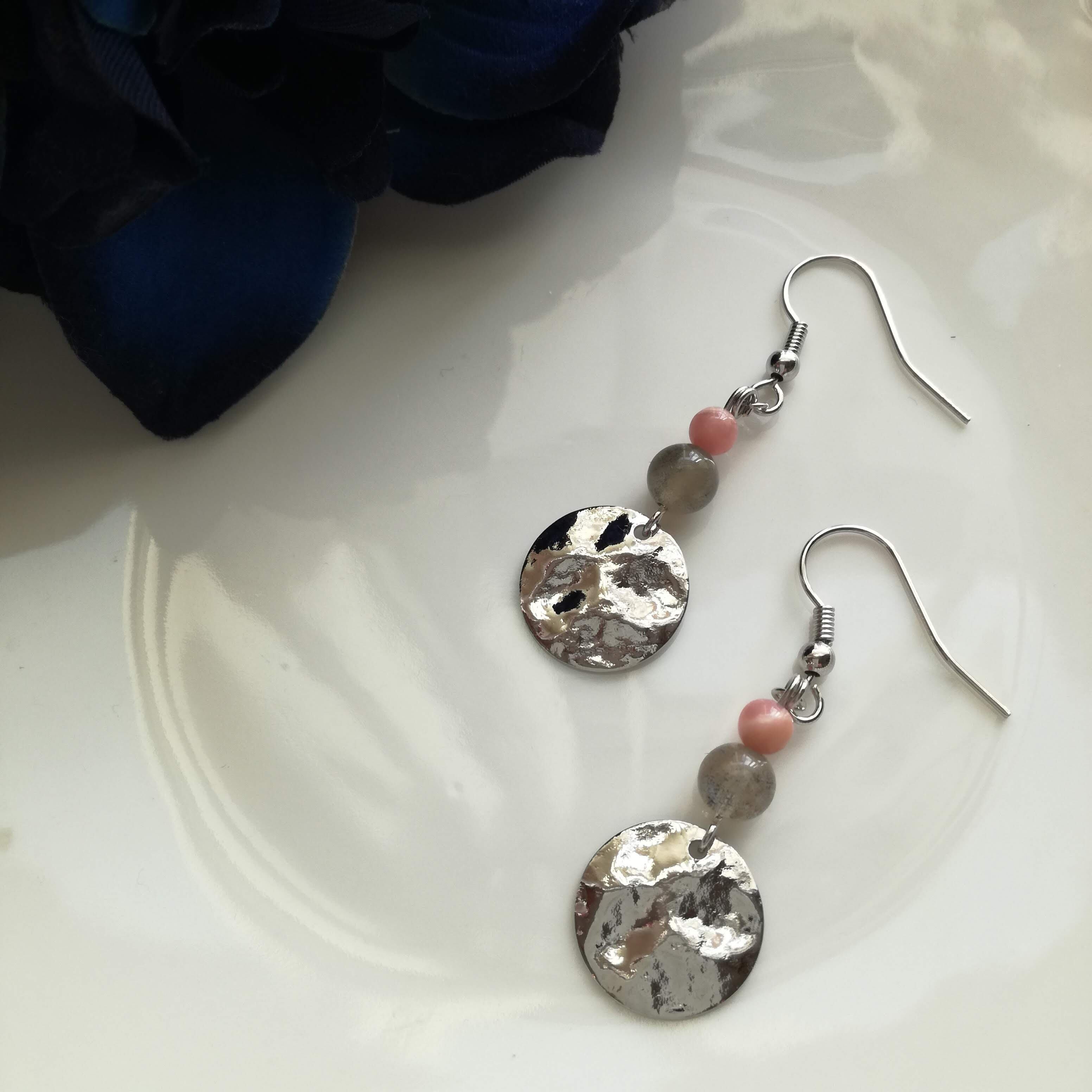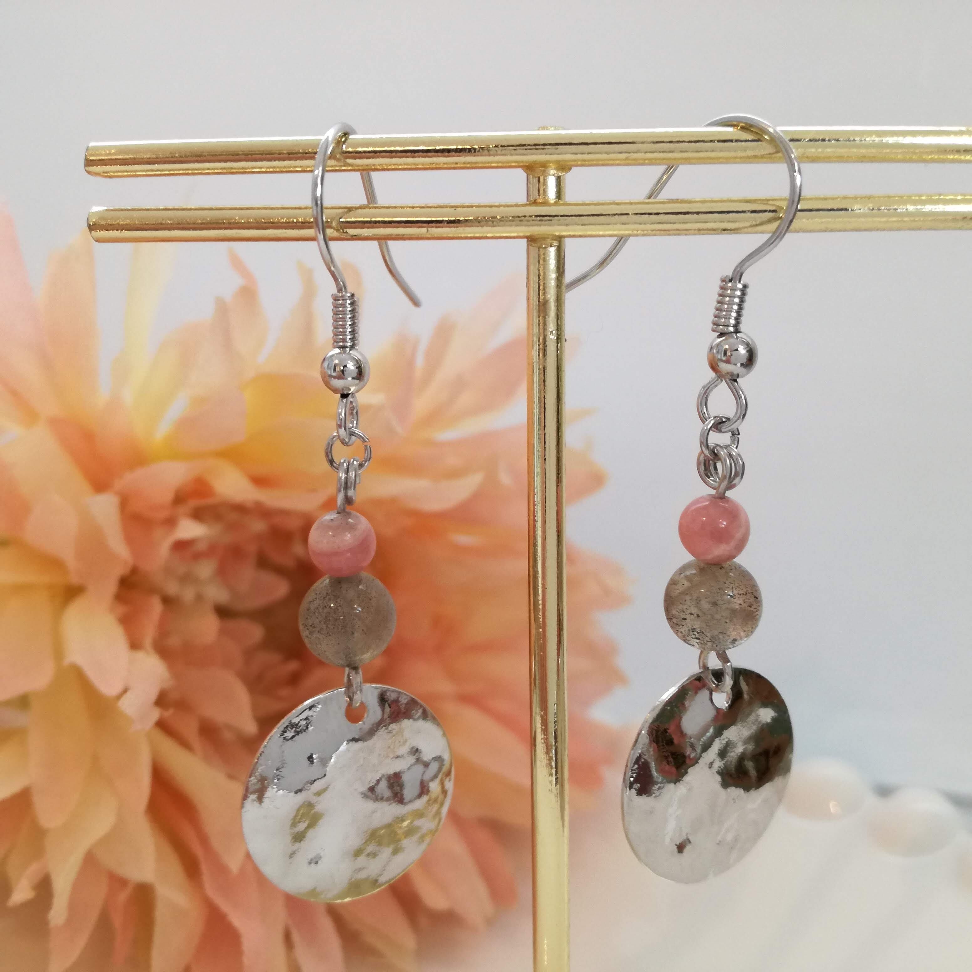 ラブラドライトとインカローズ、グレーとピンクの優しい色会わせが、シルバーのクールな印象を柔らかく、かわいらしい印象にしてくれます。